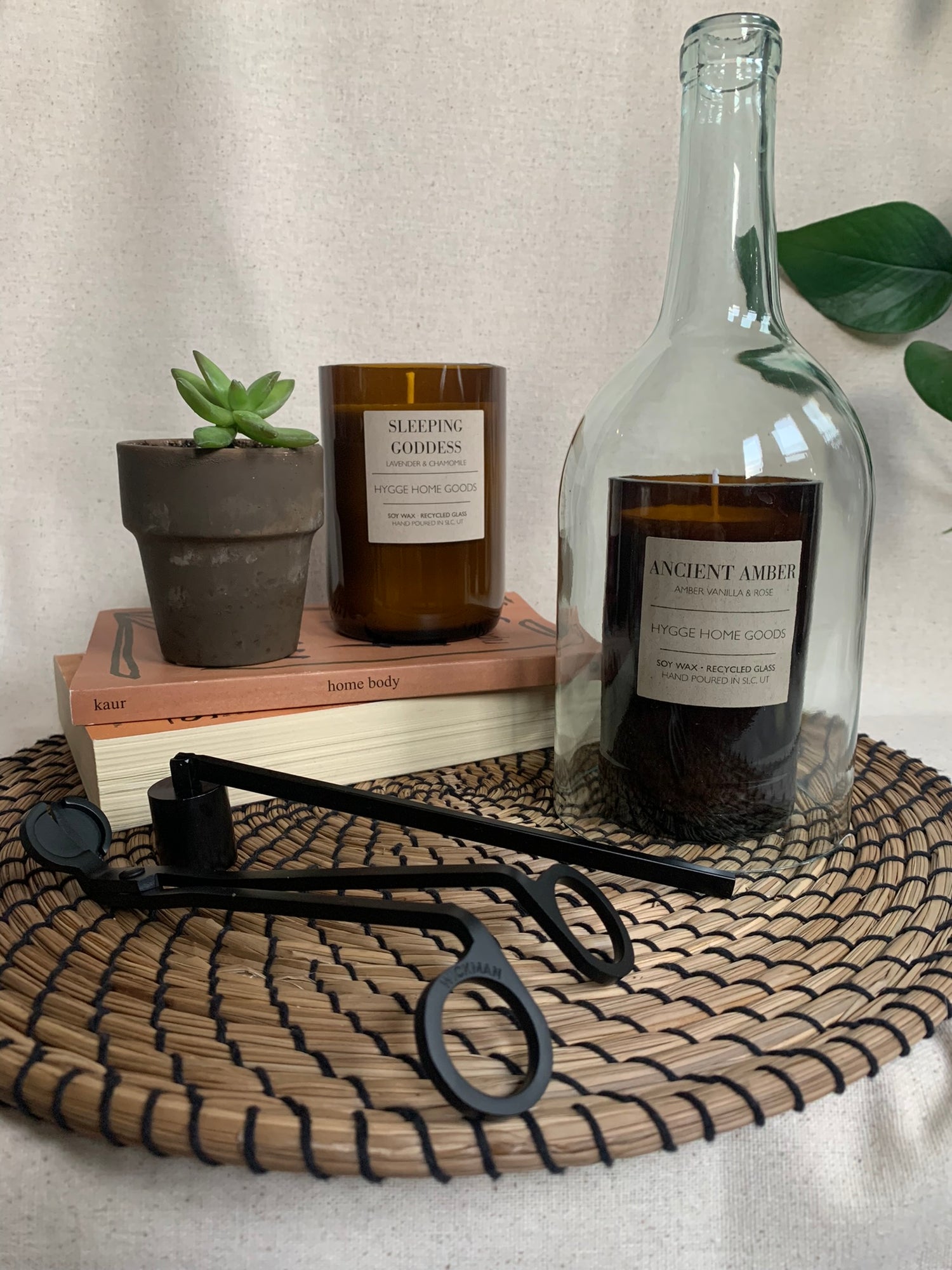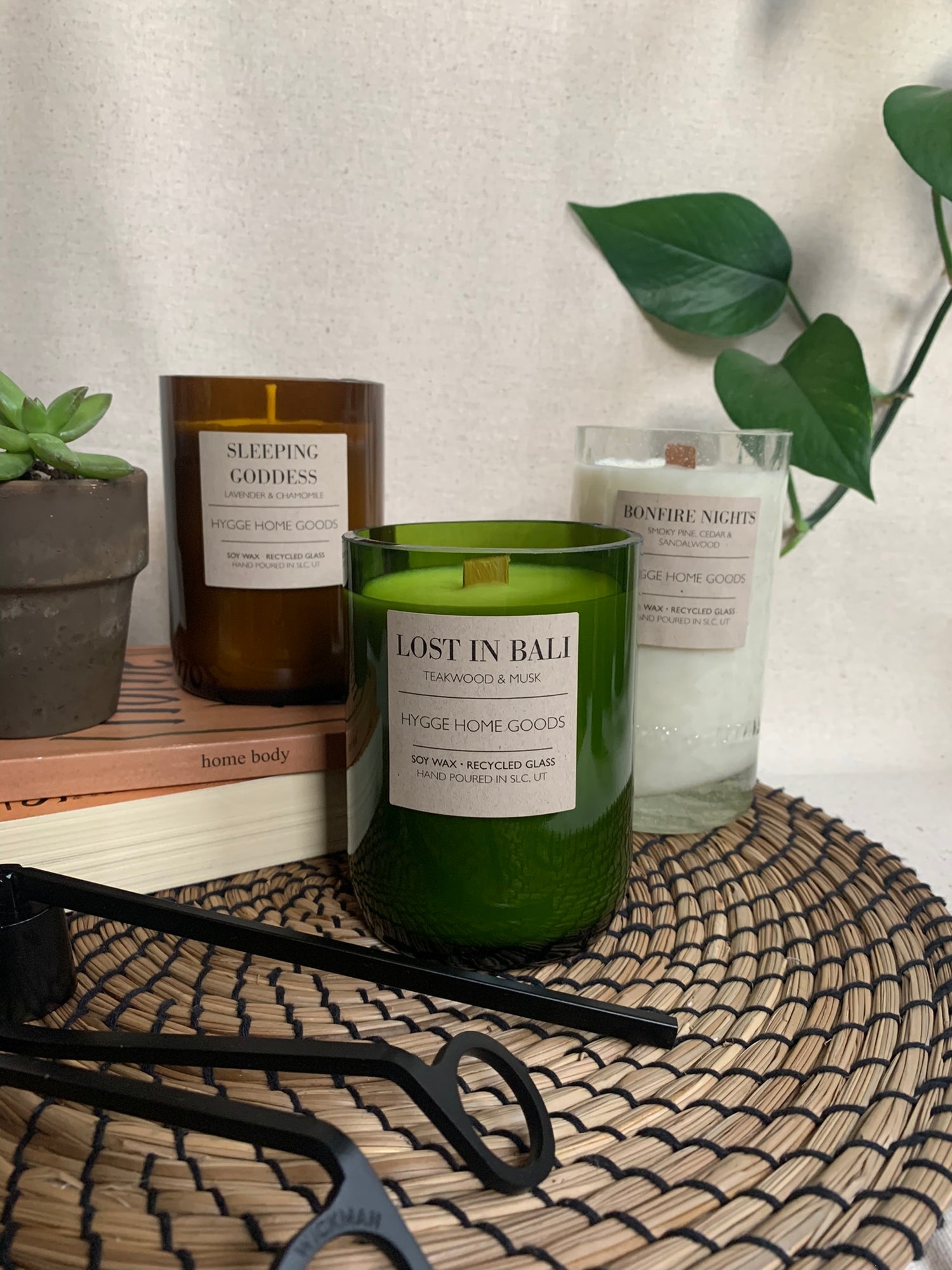 Hygge Home Goods is committed to using non-toxic, cruelty-free and sustainable materials for all our products. All of our candle containers are made using recycled glass and many of our products utilize reclaimed materials. We purposefully utilize package-free designs to reduce waste and our impact on the environment.